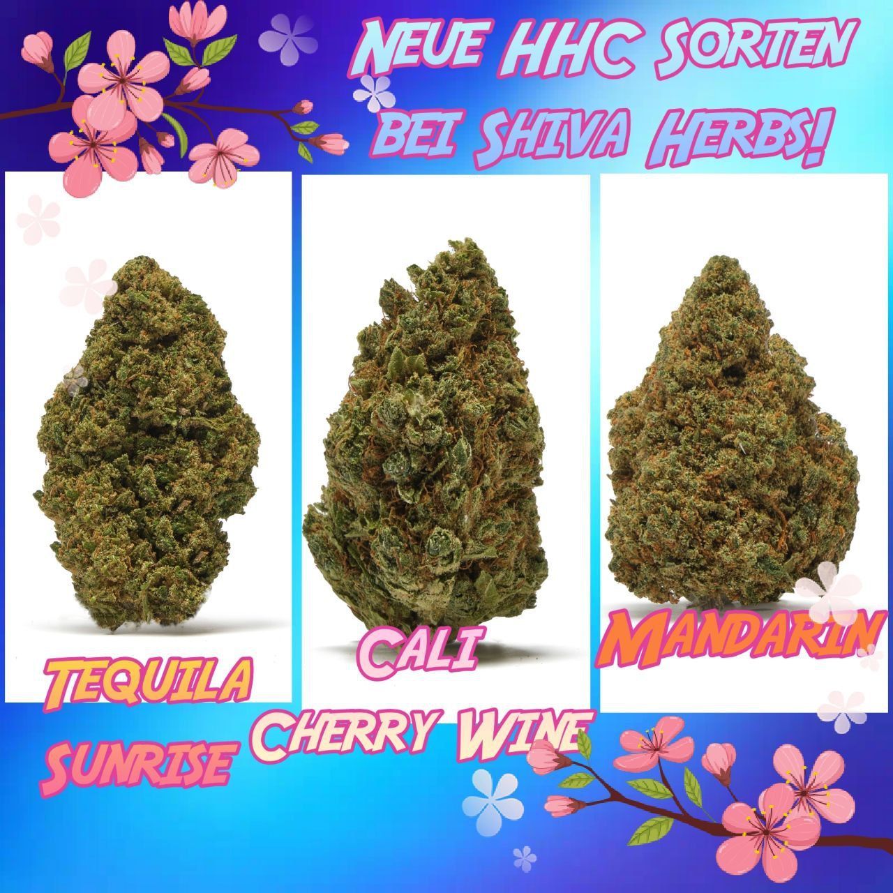 3 neue TOP Sorten im HHC Bereich! Mandarin Kush - Der Name ist hier Programm! Die leckeren Buds schmecken und riechen original nach Mandarine, mit leichten Kush-Noten im Abgang. Der Feinschmecker in dir wird Jubelsprünge machen! Die 40% HHC sind stark ausgeprägt und harmonieren perfekt mit den 15% CBD. Cali Cherry Wine - Warme und exotische Fruchtnoten, gepaart mit erdigen Pinienaromen - eine wahre Geschmacksexplosion erwartet dich hier. Zudem harmonieren die 30% HHC & 10% CBD perfekt und lassen dich sehr gut relaxen. Tequila Sunrise - Süße Fruchtaromen, Zitrusnoten sowie herbe Skunkdüfte dominieren diesen Strain. Insgesamt 30 % HHC gepaart mit 12% CBD https://www.shiva-herbs.de/shop/HHC-HHC-O-HHC-P-Bluten-&-Hasch-c143906884